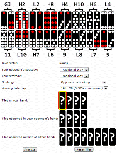 Pai gow is a game that cries out for a way to practice before making a fool of yourself and blowing your money in a casino. For this reason please try my pai gow game.