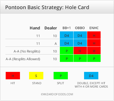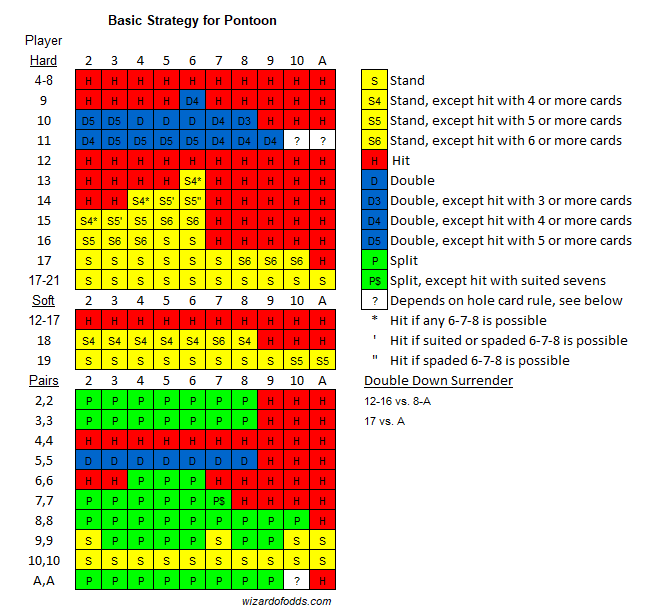 The following table shows the basic strategy for Pontoon.