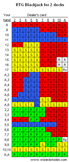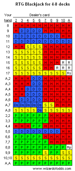 The following tables display the basic strategy for Real Time Gaming casinos, for two and 4-8 decks.
