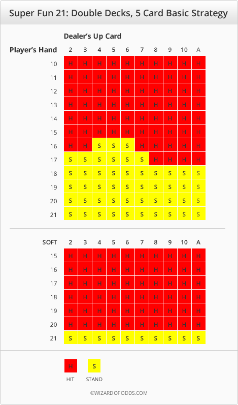 - A player hand of 21 points, consisting of 5 cards or more, except after doubling, pays 2 to 1 instantly.