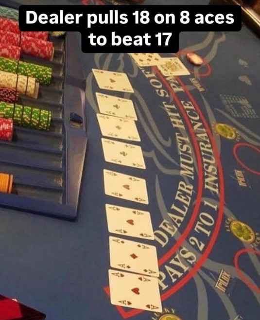 I saw this picture on Twitter. What are the odds of the dealer dealing himself eight aces?