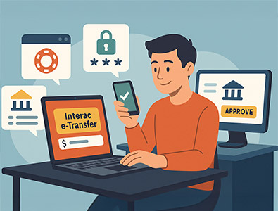 Interac e-Transfer, which is an easy way to send, request, or receive funds directly from one bank account to another (i.e. your personal account and that of an offshore online casino).