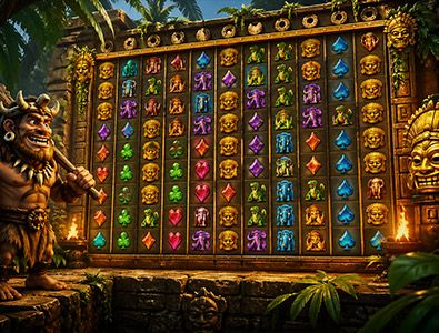 Playtech's Ugga Bugga tops the list of games available at Colombia-facing online gambling venues at 98.74%, but that big number comes in a format most players don't bother with: ten independently spinning rows across 30 reels, each resolving its own outcome per spin. No bonus round, no free spins. A golden idol wild substitutes, bets run $0.01 to $50, and all the return math lives in the base structure. Unusual enough that it doesn't show up in every lobby, but it’s worth finding if you are hunting for the highest possible returns on a certified slot.