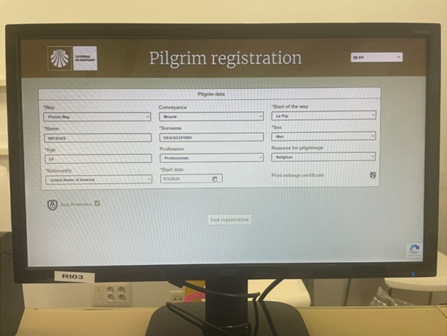 With that plan, I entered a very busy pilgrims office. A guard pointed to a room off to the side with a number of check-in terminals, like what you might see at an airport to check in for your flight. The screens asked me for basic information like my name, starting date, ending date and the two questions I just wrote about. I answered as I planned. Then I was given a number, like at the DMV, and waited for my turn to be called.