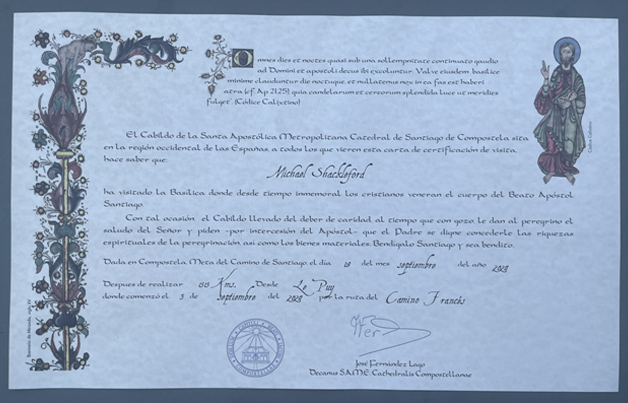 Given in Compostela, the goal of the Camino, the 18thday of September in the year 2024.
