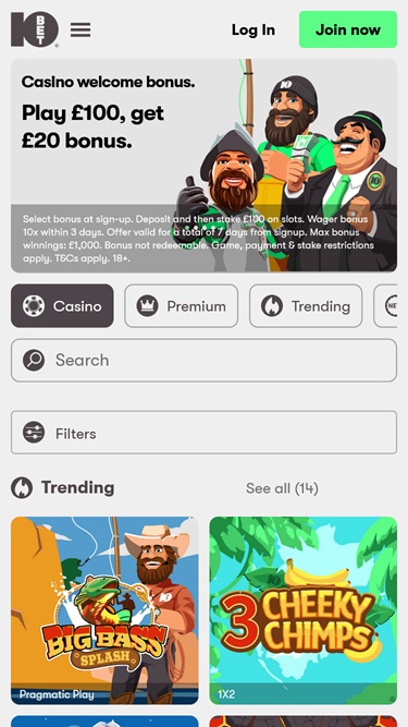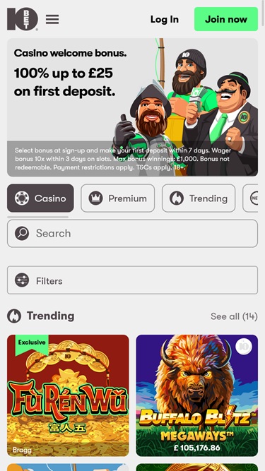 10bet is a nice casino with great support agents , the first impression is also a nice, they updated their site lately and it looks great all slots and games are working fine, alot of promotions, and everyday is some active promotion which is always something to play for , the withdrawal times are quite slow, but alright. its also easy to navigate trough the games collection whit the search button to find games fast and easy, nice providers were provided only thing is that play n go is somehow restricted for the netherlands that the only point :( but tough a nice casino.