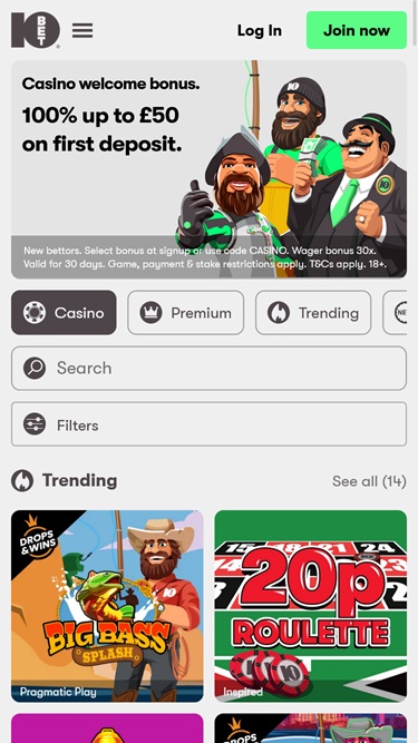 10Bet Casino is powered by Microgaming, Net Entertainment, Playtech, Big Time Gaming, Evolution Gaming, iSoftBet, playson, Rabcat, Pragmatic Play, Red Tiger Gaming, Triple Edge Studios, Northern Lights Gaming, Stormcraft Studios, Switch Studios, All41 Studios, Gameburger Studios, Pulse 8 Studios, Neon Valley Studios, SpinPlay Games, GONG Gaming, Buck Stakes Entertainment, Games Global, 2by2 Gaming, Blueprint Gaming, Merkur Gaming, Inspired Gaming, Reel Time Gaming, Old Skool Studios, Foxium, Just For The Win, PearFiction Studios, Wild Streak Gaming, Slingshot Studios, Fortune Factory Studios, Crazy Tooth Studio, Alchemy Gaming, Snowborn Games, Max Win Gaming, Gold Coin Studios, Half Pixel Studios, Eurostar Studios, Aurum Signature Studios, Lucksome Gaming, Beter and Area Vegas, giving players access to hundreds of games via the casino's web platform. The casino also has a mobile platform that allows you to play via your smartphone or tablet.