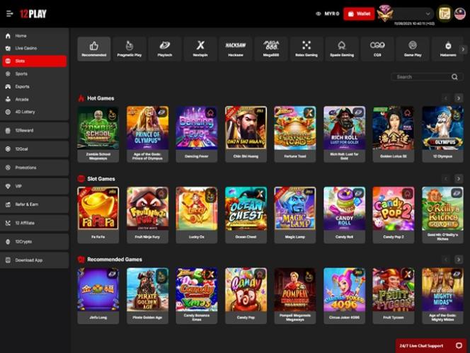 Live Casino, Slots, Sports, Esports, Arcade, and 4D Lottery are the main casino categories. They are packed with premium online gambling content created by some of the best casino game suppliers out there. Besides this, gamblers can expect a generous loyalty plan and various other perks and goodies, fast payment transactions, and more.