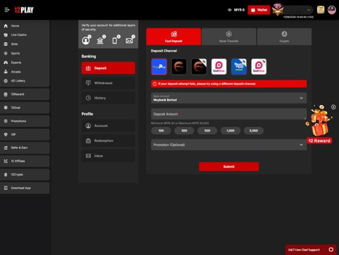 Make sure you check out recommended live-dealer titles included in 12Play’s gaming collection: Dragon Tiger, Ultimate Sic Bo, Sic Bo, Ultimate Flip, Xoc Dia, Cricket War, Dragon Tiger Da Sorte…