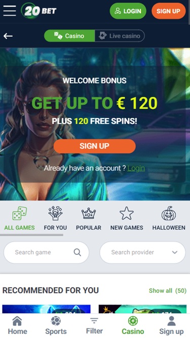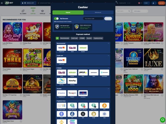 Depositor at 20 bet not playing that much there anymore however ocassionally getting some bonuses offered and that's nice. They paid out winnings without a problem which I made on both casino and betting. I like the fact of a quite decent sportsbetting offer number of games with extra bets including live. Casino hmm also fine and made max to 100 EUR if I am not mistaken which was quite fine for low deposits.
