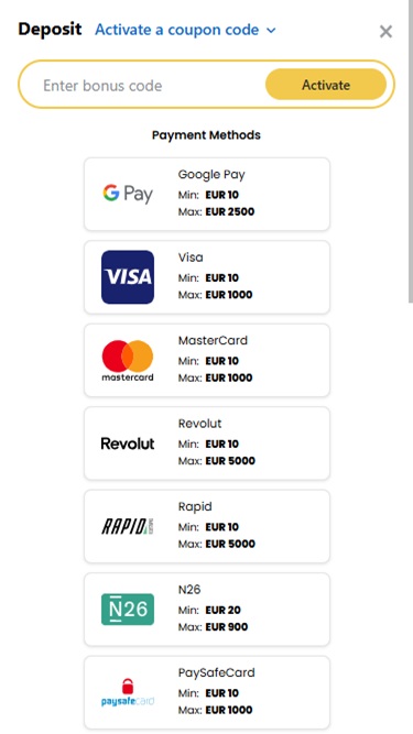 This, at first glance, quite interesting gaming place is oriented towards players mainly coming from Canada, New Zealand, Germany, and Finland and it offers website localization in English, German, Czech, Spanish, Finnish, French, Hungarian, Italian, Norwegian, and Portuguese, suggesting that players from other jurisdictions are also more than welcome to join.