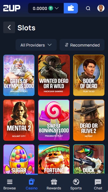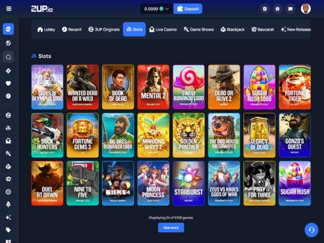 If you are a fan of online slot games, you will enjoy the fact that 2UP.io hosts a large number of slot games, and you will probably be able to find entertainment that suits your skills and preferences among thousands of available slot titles.