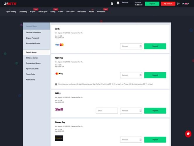 As the casino’s name implies, 31Bets is primarily a sports betting platform. Although the brand features an extensive list of casino games, players can also place bets on some of the world's most popular sports and esports events. Live betting, race betting, and favorable betting odds are available here, giving you the complete betting experience.