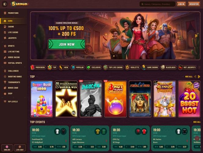 5Gringos Casino is an online betting site that is operated by Rabidi N.V. and licensed through Curacao. The casino has a Mexican theme to it, and it manages to bring a large library of games, cryptocurrency support, and a nice VIP program. These all combine to make 5Gringos a good choice for punters looking to take a trip South of the Border.Casino Info