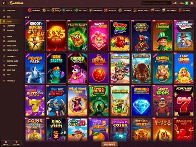 5Gringos Casino is powered by Microgaming, Net Entertainment, Playtech, BetSoft, 1x2gaming, Amatic Industries, Big Time Gaming, ELK Studios, Evolution Gaming, EYECON, Ezugi, Habanero Systems, Novomatic, Oryx, Play'n GO, playson, Quickspin, Relax Gaming, Thunderkick, Yggdrasil, Endorphina, Wazdan, GameArt, Betgames, Booming Games, PlayPearls, Stakelogic, Pragmatic Play, Nolimit City, Felt Gaming, Red Tiger Gaming, Booongo, Spinomenal, Felix Gaming, Red Rake Gaming, Skillzzgaming, Fugaso, Fantasma Games, Kalamba, Revolver Gaming, Spin Games, Platipus Gaming, Skywind, Spinmatic, Triple Edge Studios, Northern Lights Gaming, Fazi, Evoplay, Stormcraft Studios, IGTech, OneTouch, Electric Elephant Games, Bulletproof Games, All41 Studios, Gluck Games, Mascot Gaming, Gameburger Studios, Pulse 8 Studios, Neon Valley Studios, Golden Rock Studios, Spearhead Studios, Swintt, Woohoo Games, SpinPlay Games, Mancala Gaming, HungryBear Gaming, SmartSoft Gaming, GONG Gaming, Blue Guru Games, Lady Luck Games, On Air Entertainment, Buck Stakes Entertainment, Caleta Gaming, Creedroomz, Games Global, Reevo, Amusnet Interactive, Wizard Games, bluberi, Blueprint Gaming, CT Interactive, EveryMatrix, Greentube, Leander Games, Merkur Gaming, NeoGames, Pariplay, Tom Horn Gaming, Cayetano, Gamomat, Reel Time Gaming, BF Games, Bally Wulff, Iron Dog Studio, Foxium, Zitro, Just For The Win, Reflex Gaming, Storm Gaming Technology, Apollo Games, Wild Streak Gaming, Slingshot Studios, Golden Hero, Fortune Factory Studios, Green Jade Games, RubyPlay, 4ThePlayer, AvatarUX, Gamevy, Crazy Tooth Studio, NetGaming, Groove Gaming, ReelPlay, SlotVision, Alchemy Gaming, Rarestone Gaming, Indi Slots, Vibra Gaming, Black Pudding Games, Snowborn Games, Boomerang Studios, Hacksaw Gaming, Max Win Gaming, Gold Coin Studios, Bang Bang Games, Gamzix, Half Pixel Studios, Arcadem, Slotmill, Peter And Sons, Aurum Signature Studios, Charismatic, Onlyplay, Armadillo Studios, Lucksome Gaming, Gamebeat, RAW iGaming, ELA Games, Bombay Live, Leap Gaming, Aviatrix, Kiron, TaDa Gaming, Winfinity, 3 Oaks Gaming, Amigo Gaming, Wishbone Games, Apparat Gaming, PopOK Gaming, Spribe, Circular Arrow, Print Studios, Gaming Corps, HammerTime Games, BetSolutions, Four Leaf Gaming, INO Games, Nailed It! Games, Atomic Slot Lab, Neko Games, Reel Kingdom, Oros Gaming, Givme Games, JVL, Indigo Magic, Zillion Games, ICONIC21, Clawbuster, VoltEnt, Kitsune Studios, InOut Games and Turbo Games and the casino’s games are provided through a web-based platform that loads through your internet browser. The site is well-designed, attractive, and easy to navigate. 5Gringos also supports mobile play, so you can gamble on your phone or tablet if you want.Blackjack