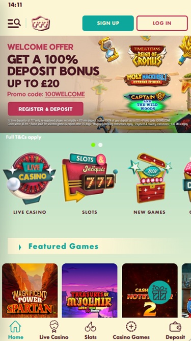 777 Casino has not earned endorsement from the Wizard of Odds.