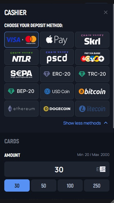 💰 Min Deposit€3 (Crypto)/€20 (Other methods)