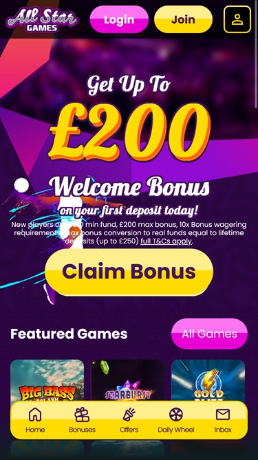 There is a VIP program on offer at All Star Games, with players advancing as they play more at the casino. Players begin leveling up through the system when deposit more than £100.