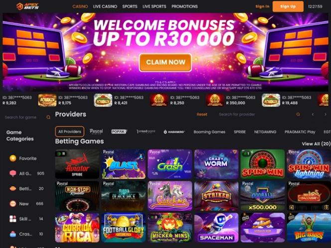 Apex Bets is a South African-friendly online casino that promises an unforgettable gambling experience, featuring a sizable selection of casino games and sports betting options, including real-money slots, live dealers, table games, and instant crash games.