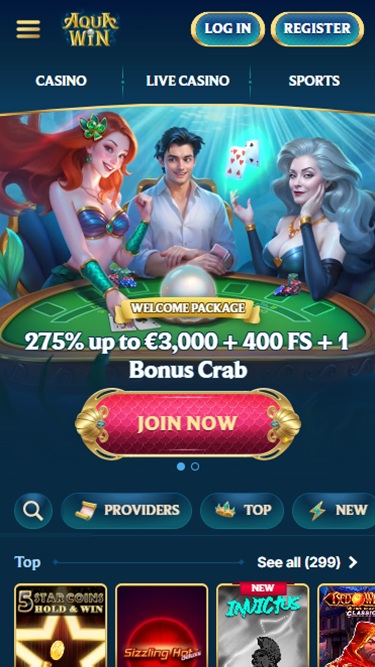 From the moment you land on the site, AquaWin Casino makes a strong first impression. True to its name, it dives into an underwater theme, with vibrant blue backdrops and rich golden accents that give it a fresh, inviting look. Navigation is simple, with every section easy to spot, so you won’t waste time hunting for what you need.