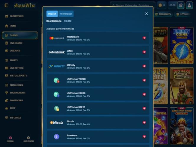 But the visual appeal is just the beginning. AquaWin backs up its stylish design with a massive game library, thousands of titles covering everything from online slots and table games to crash games and immersive live dealer action. There’s no shortage of ways to keep the reels spinning and the cards turning.