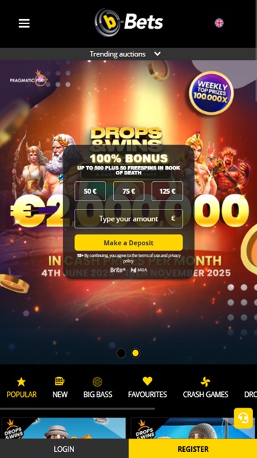 b-Bets Casino is powered by Microgaming, Net Entertainment, BetSoft, 1x2gaming, Amatic Industries, Big Time Gaming, ELK Studios, Evolution Gaming, Genesis Gaming, Habanero Systems, iSoftBet, Oryx, Play'n GO, playson, Quickspin, Rabcat, Relax Gaming, Thunderkick, Wazdan, Realistic Games, Booming Games, Pragmatic Play, Red Tiger Gaming, Red Rake Gaming, Skillzzgaming, Fantasma Games, Kalamba, Skywind, Triple Edge Studios, Northern Lights Gaming, Stormcraft Studios, Switch Studios, Electric Elephant Games, All41 Studios, Gameburger Studios, Pulse 8 Studios, Neon Valley Studios, Golden Rock Studios, Spearhead Studios, Swintt, SpinPlay Games, 7Mojos, Games Global, 2by2 Gaming, Ainsworth, Merkur Gaming, Push Gaming, Tom Horn Gaming, Gamomat, Iron Dog Studio, Foxium, Zitro, Just For The Win, Storm Gaming Technology, Apollo Games, Slingshot Studios, Golden Hero, Fortune Factory Studios, STHLM Gaming, 4ThePlayer, Gamevy, Crazy Tooth Studio, Alchemy Gaming, Plank Gaming, Snowborn Games, Hacksaw Gaming, Max Win Gaming, Gold Coin Studios, SilverBack Gaming, Peter And Sons and Eurostar Studios, and games are accessible through a web-based platform, meaning that you play directly through your web browser. There is also a mobile site for those who wish to play on their smartphones and tablets.