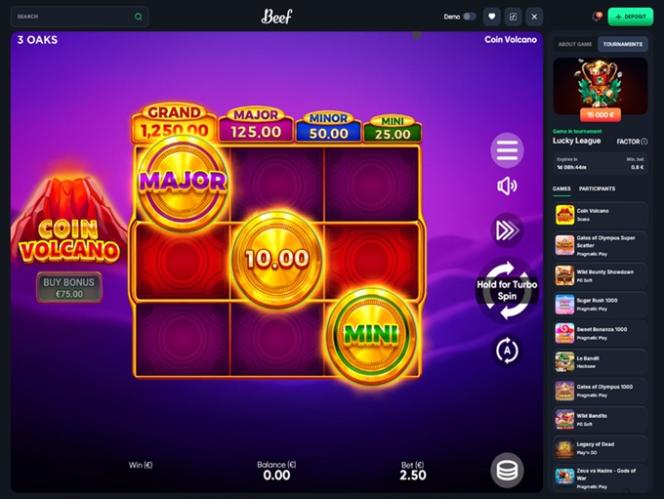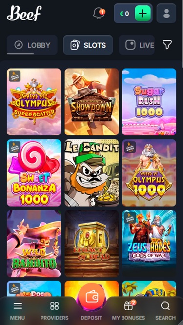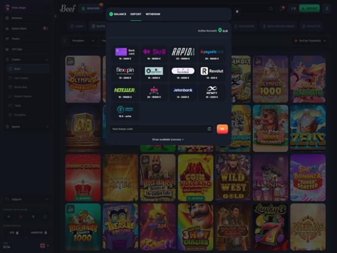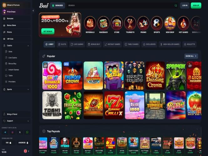 Launched in 2025, Beef Casino is an expansive gambling site with a massive lineup of casino games and sports betting options. The brand welcomes players from Germany, Austria, and Switzerland. It aims to offer them a complete gambling experience with hundreds of online slots, live dealers, table games, and instant crash games, all while featuring many betting options, bonuses, promotions, and tournaments.