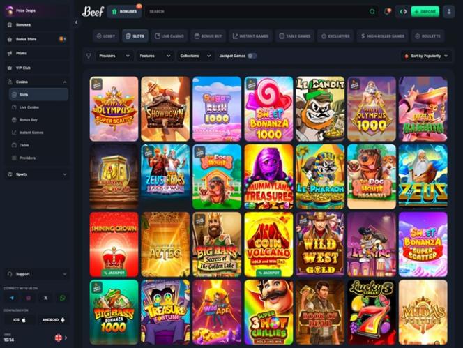 Finally, players can spend time in Beef Casino’s sports betting section, which features hundreds of sports and esports events on which they can wager. The sportsbook has all the necessary options, including live betting capabilities that allow you to jump into action anytime.