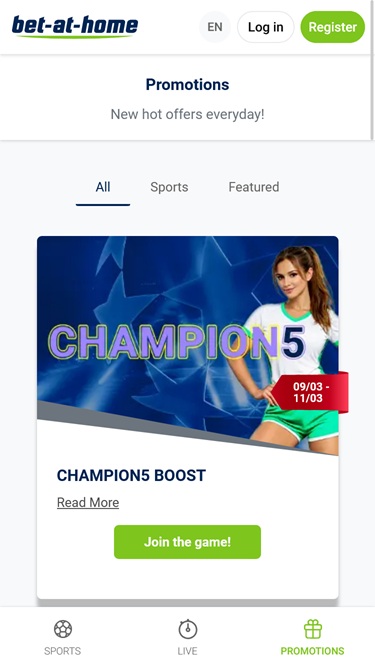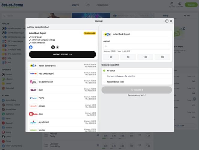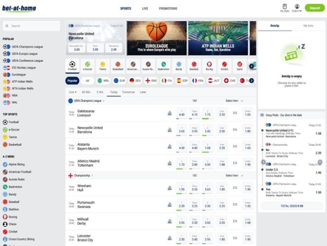 In addition to standard casino games, Bet-at-home offers a robust sportsbook and live dealer casino to its customers.