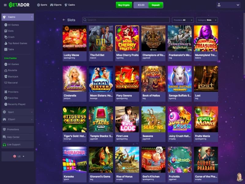 Lobby, Live Casino, Slots, Crash, Top Rated Games and Table Games are the main Casino section categories. Even though we have seen way larger gaming libraries, players will be able to try out a wide range of genres at Betador, including popular crypto games that modern casino members are especially interested in.