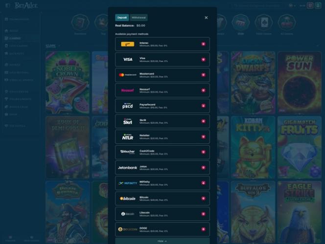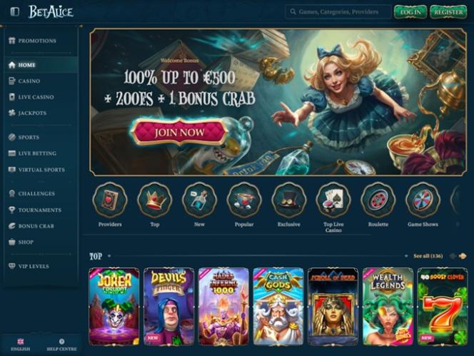 BetAlice includes Casino, Live Casino, and Sports sections, so players will have the chance to explore various casino genres, try out different types of bonuses, and participate in a VIP plan.
