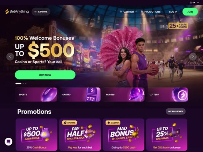 Here are some of the US friendly slot games, available across BetAnything’s set of casinos: Golden Buffalo, Year of the Rabbit, Larry's Lucky Tavern, Wynloch Keep, Reels & Wheels, Pandas Go Wild, A Night With Cleo, 777 Deluxe, Mistress of the Sea, Slot Madness, Spins of Independence, Horoscope, Dino Gangsters, Reels of Potions, Farmer vs Rabbit, Throne's Conquest, Mr. Leprechaun, Irish Shamrock, Sportfishing Club, Arabian Treasure, Spins of Zeus, 88 Frenzy, Coins of Christmas Hold & Win, Ultimate Golden Dragon Inferno Hold & Win, Wilds of Fortune, A Big Catch Hold & Win, Triple Lucky 8, Coins of Alkemor Hold & Win, Caishen God of Fortune Hold & Win, Take the Vault Hold & Win, Golden Destiny Hold & Win, Hot Lucky 7s, Gold Panther, Gold West, Fruits Mania, Spin and Win, Tiki Rush, Snake Treasure, River of Gold, and more.