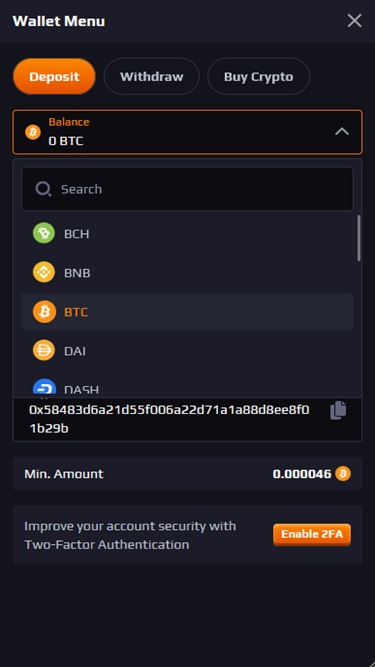 This platform is focused solely on providing players with crypto banking options. Customers can use currencies such as Bitcoin, Ethereum, Dogecoin, Ripple, Bitcoin Cash, Litecoin, Tether, and Monero. Unfortunately, there are no traditional banking methods available.
