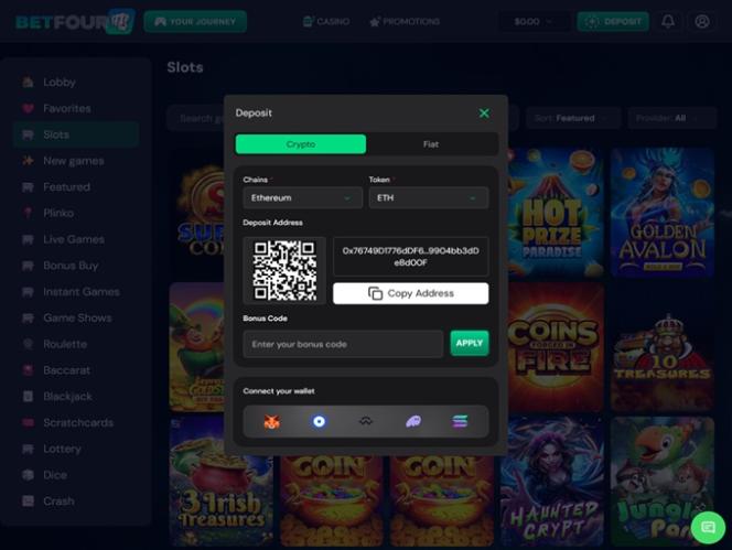 In the casino lobby, you will find slots, poker, live games, bonus buy titles, instant games, game shows, roulette, baccarat, blackjack, scratch cards, lottery, dice, crash games, and more.
