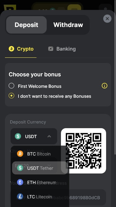 Players can manage funds using both fiat currencies and cryptocurrencies.