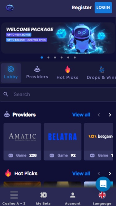 At first sight, we were impressed not only with the casino visuals but also with the available options that include Megaways, Slots, Live Casino section, Table Games, Crash Games, Roulette, Blackjack, Lotto, Scratch Cards, Instant Games, Game Shows, Bingo, Dice, and other attractive categories.