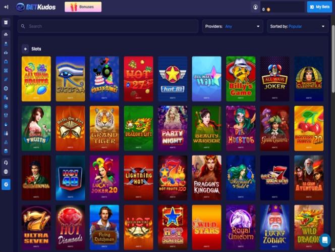 The web page comes with a left-side main menu, while the main area is reserved for the available gambling content that players will be able to browse easily, regardless of whether they have just discovered the world of online gambling or they are experienced and know exactly what they would like to try out at BetKudos.