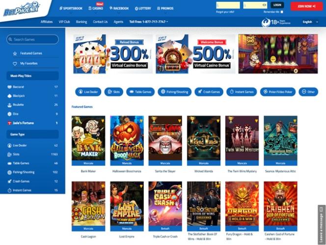 There are a decent number of slots available to play at BetPhoenix, although the games are very simplistic in their design and features.