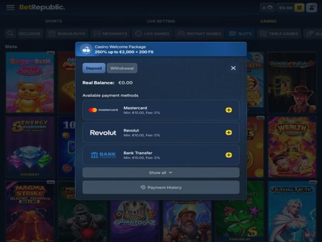 Made by a group of gaming enthusiasts who wish to present their customers with best possible gaming experience the BetRepublic online casino comes fully equipped to cater both to the casino enjoyers and sport betting connoisseurs.