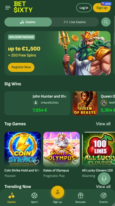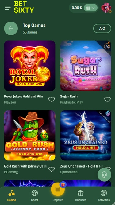 Suppose you’re interested in playing all the available games from the comfort of your couch or on the go. In that case, you’ll be able to do so with ease, as the entirety of the BetSixty Casino is optimized for Android and iOS devices. All the games run smoothly, and loading times are quick.