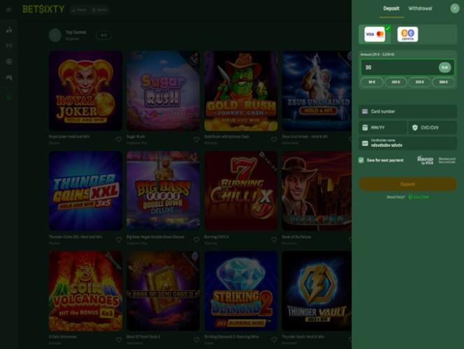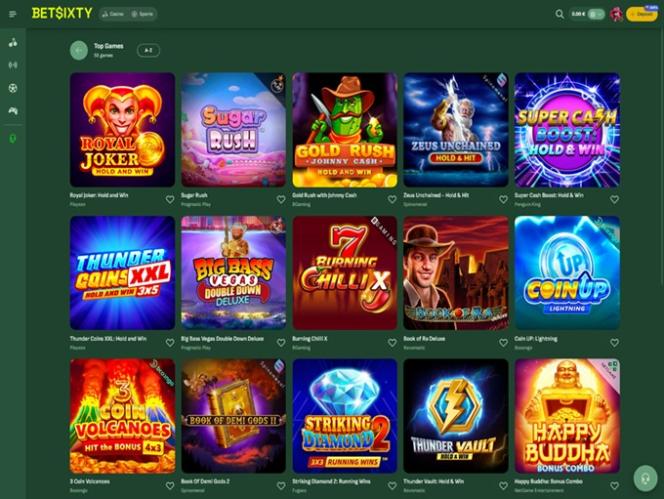 BetSixty Casino knows its strength lies in its portfolio of available games, and the offered catalog is undoubtedly stunning, considering the sheer number of releases players can experience. Table games, online slots, and live dealers are all here, and you can spend hours simply browsing through all the available choices.