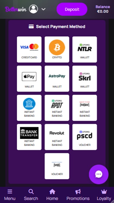 No matter if you are accessing BetterWin through your personal computer or you are playing games on your mobile phone or any other portable device, your experience will be good, as the operator made sure that the casino content is optimized for all devices.