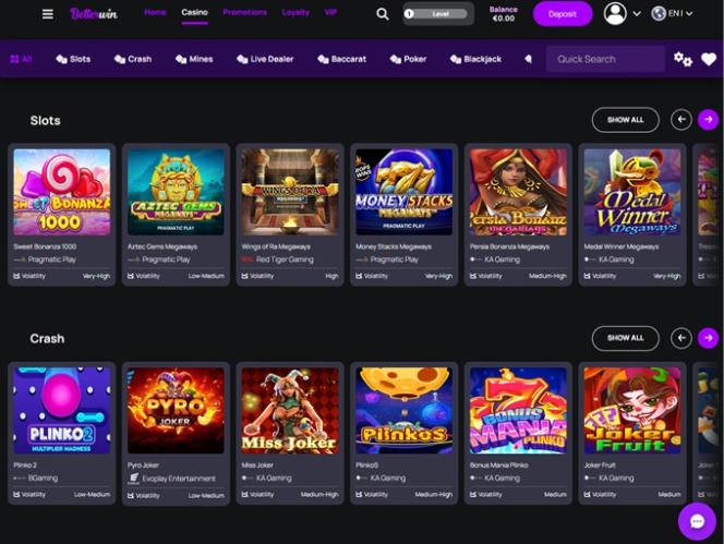 Note that players can use a handy search feature where they will be able to set filters and choose volatility level, game providers, or browse their favorite game by name.