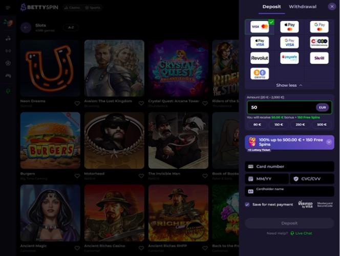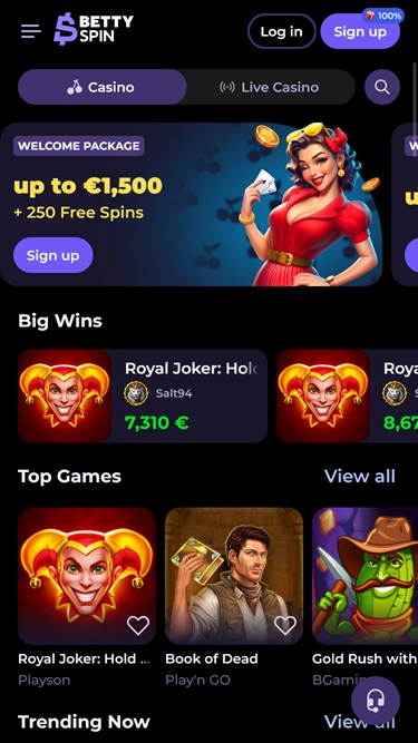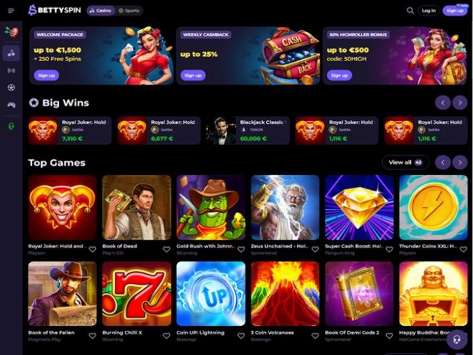 Bettyspin is a crypto-friendly online casino and sportsbook, licensed and regulated by the Curacao Gaming Authority. Whether you are into online slots, blackjack, roulette, or any other casino game, chances are you will have no issues finding it here.
