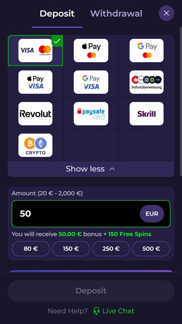 If you are a crypto enthusiast, you will be happy to hear that you have more than a handful of cryptocurrencies available, which you can use for both deposits and withdrawals!