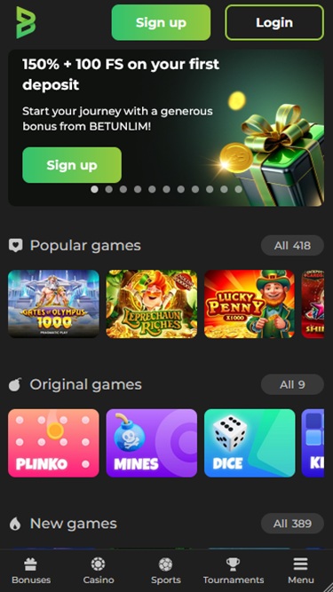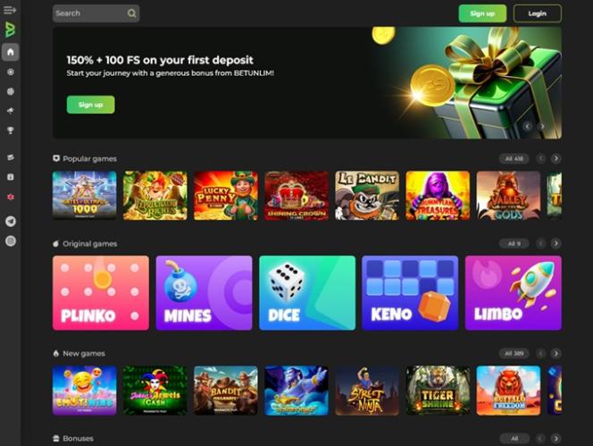 The promotional section is also rich, and gamblers who enjoy boosting their winning opportunities with casino bonuses will have many choices available at Betunlim. Let's start with new players and an introductory offer they can count on.