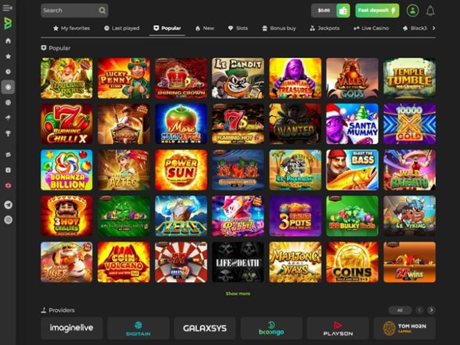 Registering and receiving a bonus is quick and easy. Paying is also quick and easy. Lots of games to choose from and lots of providers.