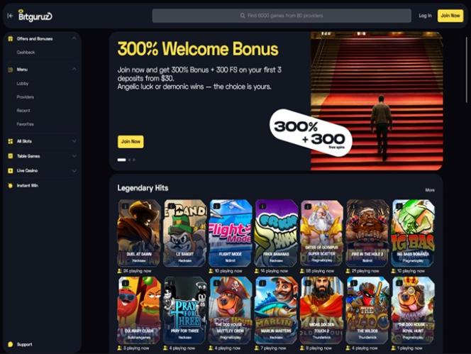 Bitguruz is a crypto-friendly online casino operating under Anjouan license, boasting a wide range of casino games. Whether you are looking for different table games, prefer the instant action of crash and instant games, or enjoy spinning the reels of one-armed bandits, odds are you will find it here.