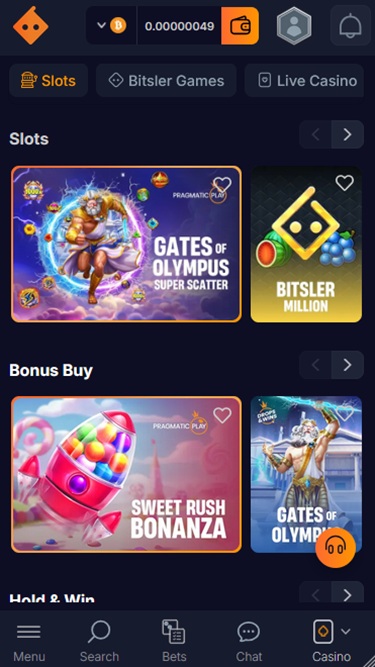 Live Casino games always spark up the atmosphere. At Bitsler the players may try out: Crazy Time, Lightning Roulette, Mega Ball, Dream Catcher, Bac Bo, Monopoly, Lightning Dice, Roulette Live, Adventures Beyond Wonderland, Roleta Brasileira, Deal or No Deal, Lightning Baccarat, Blackjack, Super Sic Bo, Three Card Poker, Side Bet City, Craps, First Person Mega Ball, Gonzo's Treasure Hunt, Double Ball Roulette, Buffalo Blitz Live, Hindi Roulette, Live Hi-Lo, Spin A Win, Quantum Roulette, Age of the Gods Bonus Roulette, First Person Dream Catcher, Caribbean Stud Poker and more.