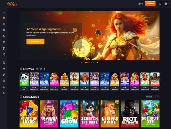 As expected, online slot games are the most dominant category at Blaze Spins, and players here can count on a diverse selection of titles. Here are some of the featured ones: